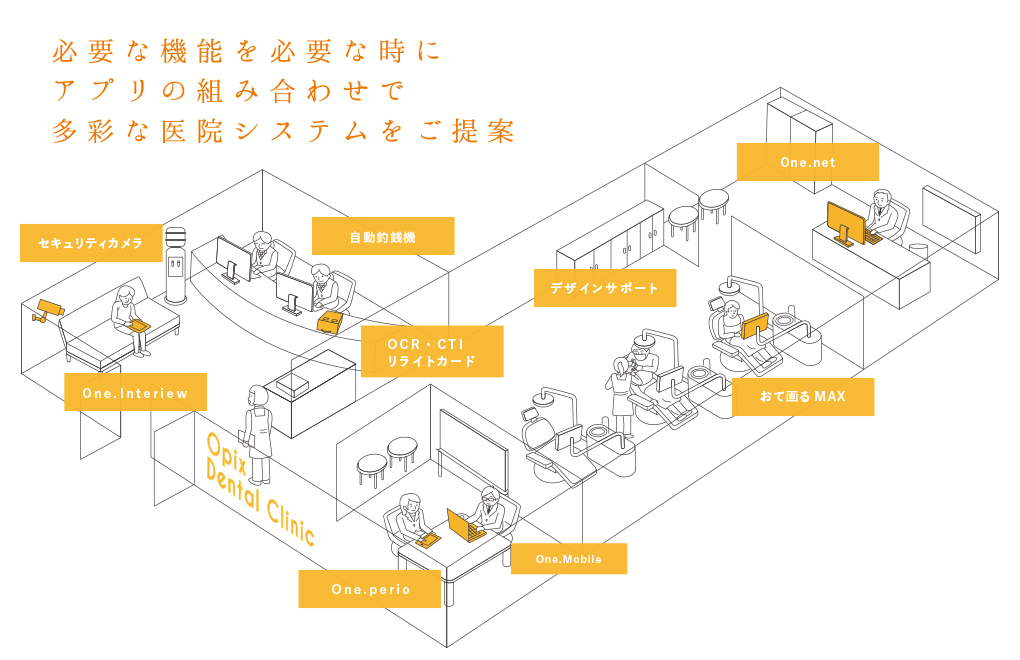 歯科の総合商社(レセコンやレントゲンなどを扱うメーカー)ではありませんが、歯科業界以外の多種多様なグループ企業との連携を通じて新たな提案を創造致します。