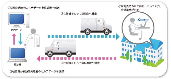 ・訪問先でのカルテ入力が可能になり、治療行為の妥当性、請求内容の正当性検証をリアルタイムで行うことができます。